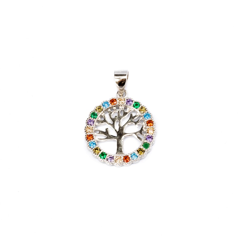 Srebrna zawieszka 925 drzewko szczęścia kolorowe cyrkonie