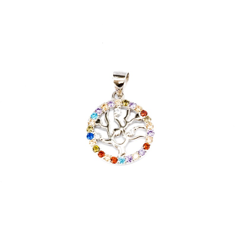 Srebrna zawieszka 925 drzewko szczęścia kolorowe cyrkonie