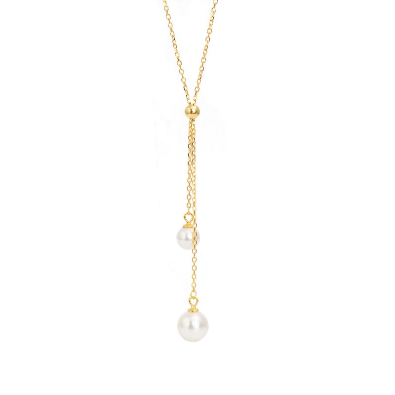 Pozłacany naszyjnik wyróżnia się swoim niezwykłym blaskiem i subtelnym pięknem. Wykonany z najwyższej jakości pozłacanego srebra, emanuje luksusem i elegancją. Kolekcja połączonych perłowych koralików tworzy efektowną kompozycję, ożywiając całą konstrukcję. Każda perła jest starannie dobranej wielkości i kształtu, tworząc niepowtarzalny i zmysłowy wygląd. Ten naszyjnik jest połączeniem klasyki i nowoczesności, dodając wyjątkowego uroku i splendoru do każdej stylizacji.