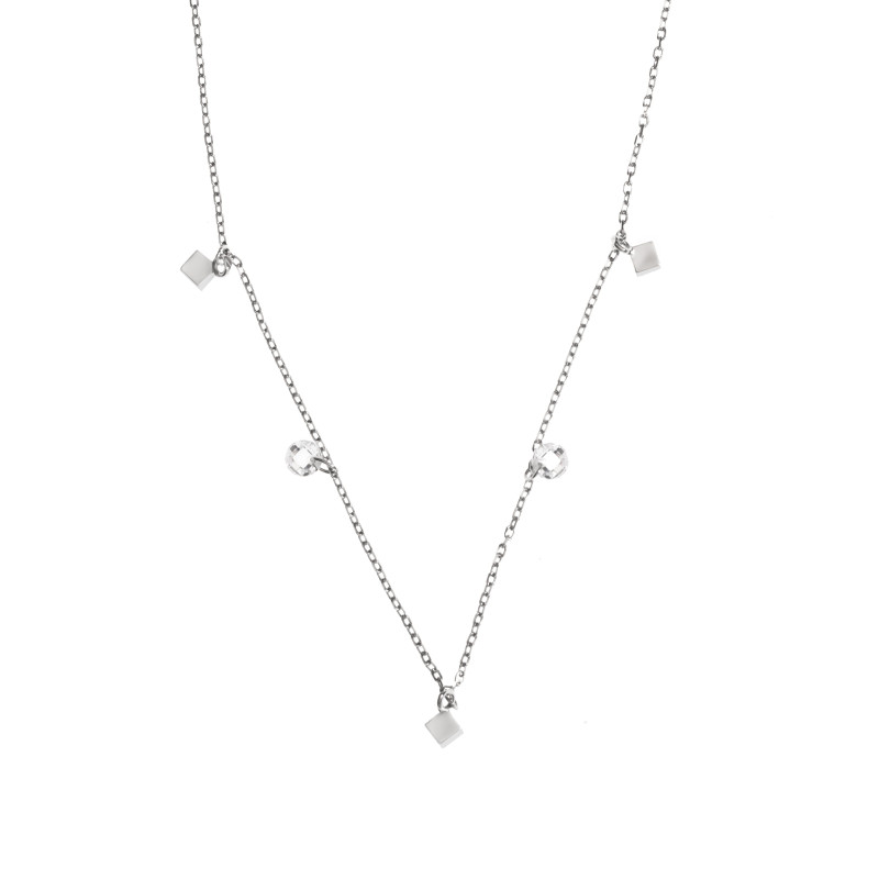 Przedstawiamy srebrny naszyjnik "Sześciany" zdobiony cyrkoniami, wykonany z najwyższej jakości srebra próby 925.