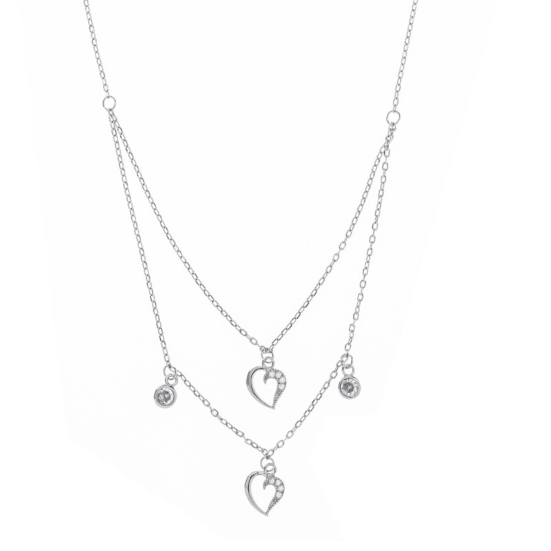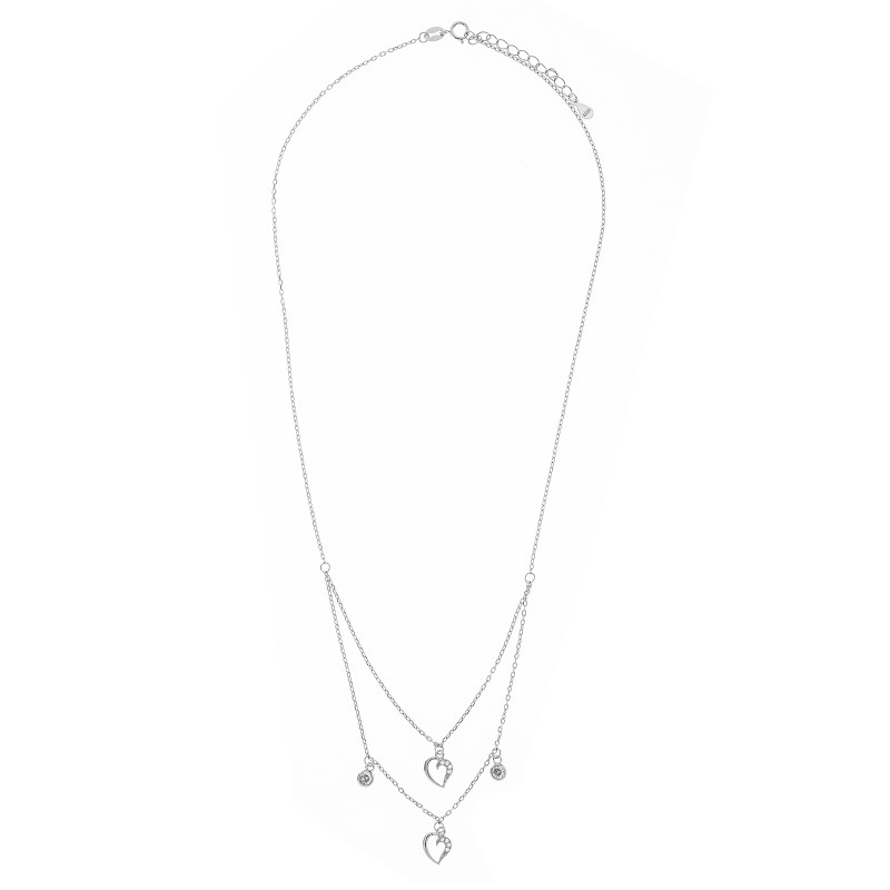 Srebrny podwójny naszyjnik 925 Błyszczące Serca Cyrkonie