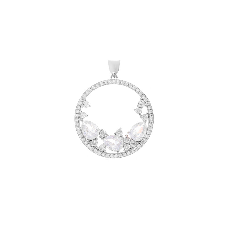 Ta elegancka zawieszka wykonana ze srebra próby 925 zachwyca swoim wyjątkowym designem, łączącym klasykę z luksusowym blaskiem. Okrągły kształt został ozdobiony drobnymi cyrkoniami na całym obwodzie, a na nim umieszczono łezki, które dodają zawieszce niezwykłej głębi i elegancji. Subtelnie mieniące się kamienie tworzą efekt pełen światła, idealnie komponując się z różnymi stylizacjami. To doskonały wybór dla osób ceniących szykowne, a zarazem nowoczesne dodatki. Zawieszka "Łzy Blasku" to także wyjątkowy pomysł na prezent, który olśni swoją subtelną, ale wyrafinowaną formą.