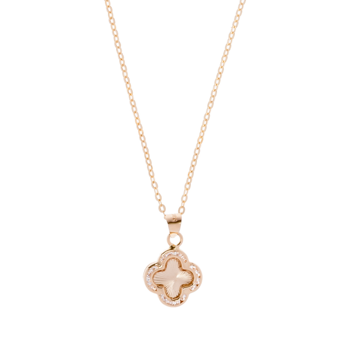 Wykonany z wysokiej jakości złota próby 585, zachwyca subtelnym wzorem promienistej koniczynki ozdobionej błyszczącymi cyrkoniami, które pięknie odbijają światło i dodają całości wyjątkowego uroku.