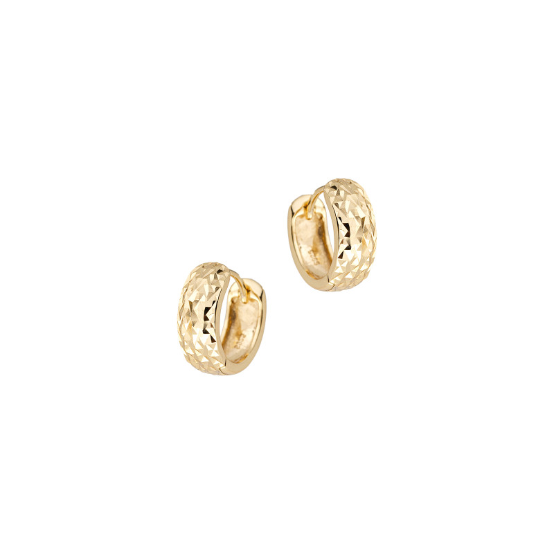 Stylowe i ponadczasowe, te srebrne pozłacane kolczyki próby 925 to idealny wybór dla miłośniczek klasycznej elegancji. Powierzchnia ozdobiona diamentowanym wykończeniem subtelnie odbija światło, dodając kolczykom wyjątkowego blasku i głębi. Ich prosty, lecz wyrafinowany design w formie kółek sprawia, że pasują do każdej stylizacji – od casualowej po wieczorową.