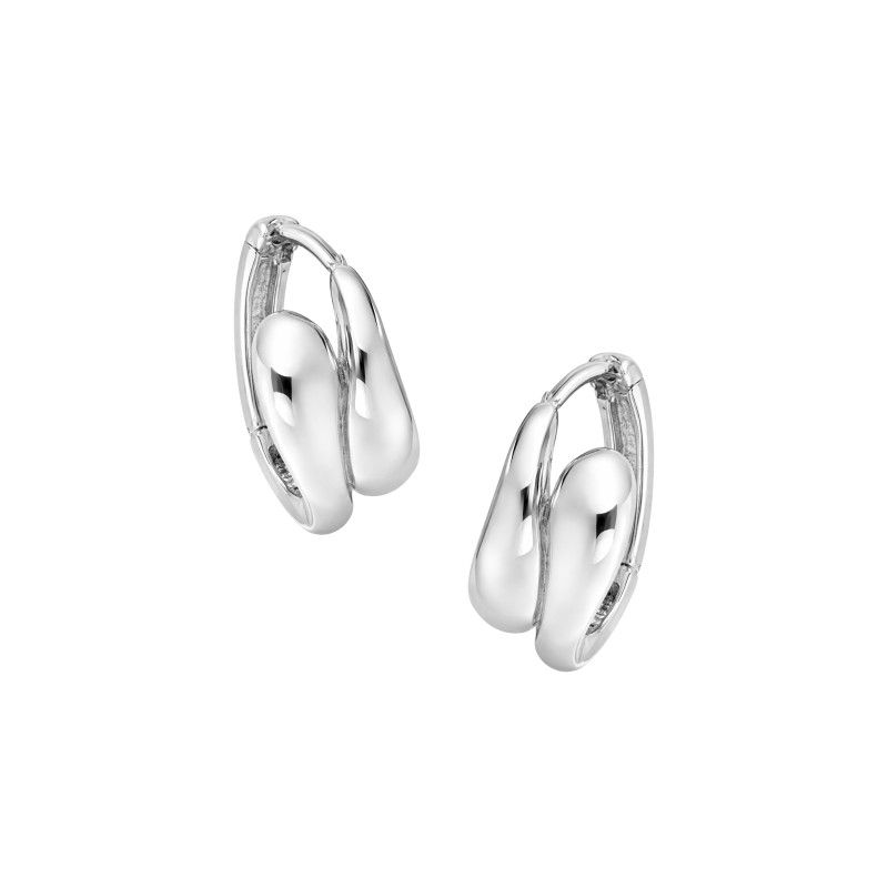 Eleganckie kolczyki srebrne próby 925 o nowoczesnej formie połączonych, miękko zaokrąglonych łezek. Ich gładka, polerowana powierzchnia pięknie odbija światło, podkreślając subtelny blask i minimalistyczny charakter biżuterii. Oryginalny, a zarazem ponadczasowy design sprawia, że kolczyki doskonale uzupełniają zarówno codzienne stylizacje, jak i bardziej eleganckie zestawy.