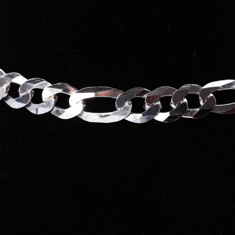 Wysokiej jakości łańcuszek o klasycznym splocie typu figaro. Szerokość: ok. 9 mm. Wykonany z najwyższej jakości lśniącego srebra próby 925.  Złożony z okrągłych i podłużnych ogniw. Doskonale podkreśli Twój wyjątkowy charakter i styl. Łańcuszek pasuje dla kobiet i mężczyzn. Fabrycznie nowy.