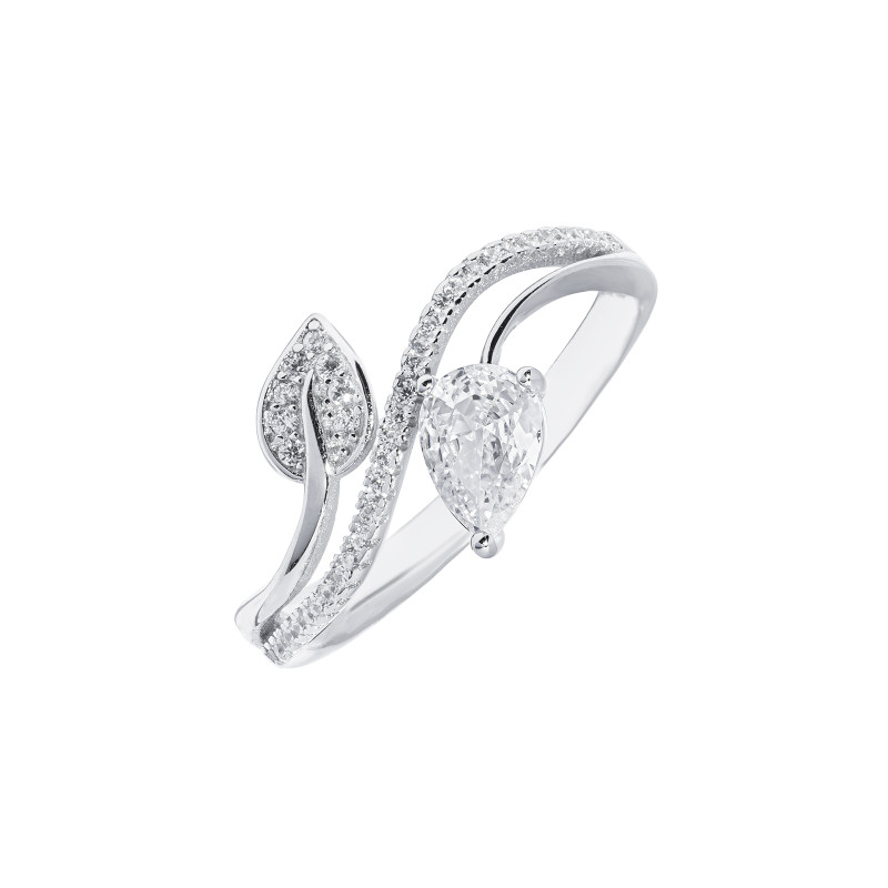 Zachwycający pierścionek o kwiatowym wdzięku i ponadczasowym uroku. Srebrzysty Kwiat wykonany jest ze srebra próby 925 i ozdobiony misternie oprawionymi cyrkoniami, które układają się niczym delikatne płatki rozkwitłego kwiatu. Centralna cyrkonia przyciąga spojrzenia, a blask kamieni dookoła subtelnie podkreśla jego kobiecy charakter. To idealny wybór dla miłośniczek romantycznych, eleganckich dodatków – doskonały zarówno na co dzień, jak i na wyjątkowe okazje.