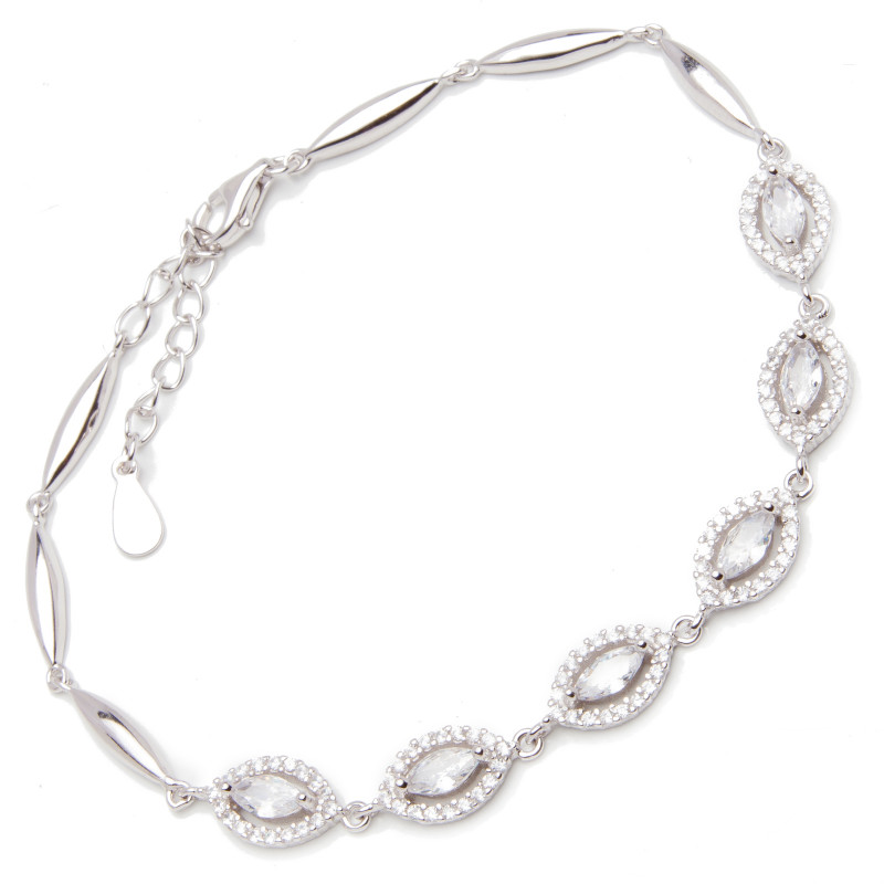 Srebrna bransoletka z białymi cyrkoniami w kształcie łezek