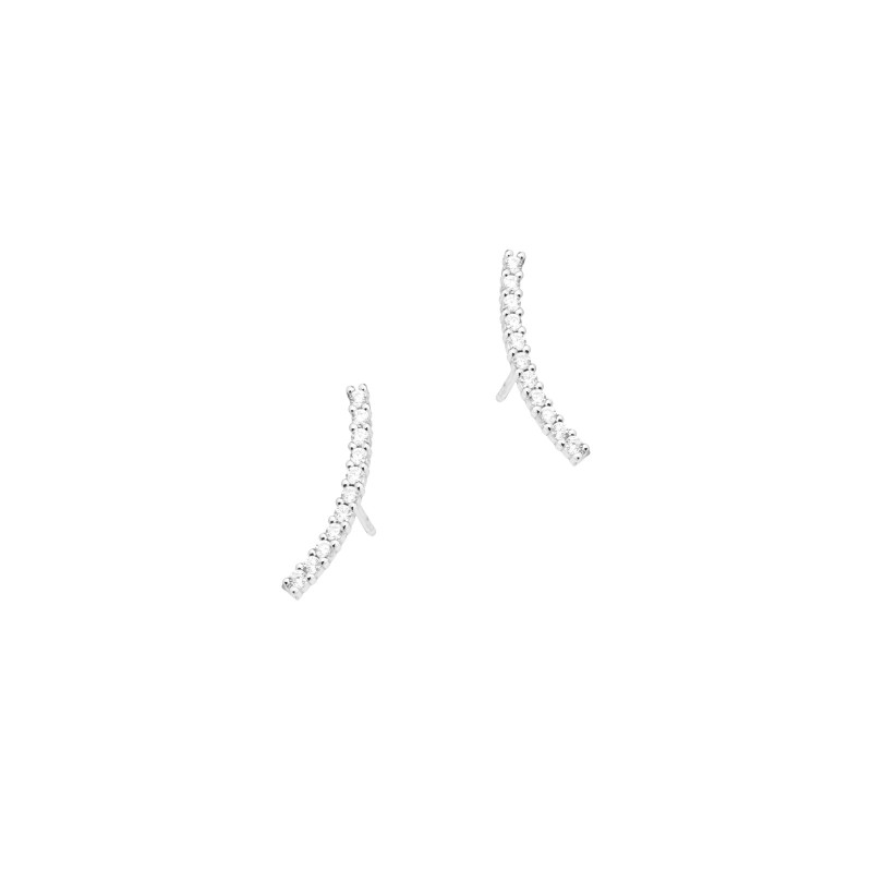 Te urokliwe srebrne kolczyki z motywem łuku z błyszczącymi cyrkoniami są prawdziwym połączeniem elegancji i delikatności. Wykonane ze srebra i ozdobiony pięknymi białymi cyrkoniami.