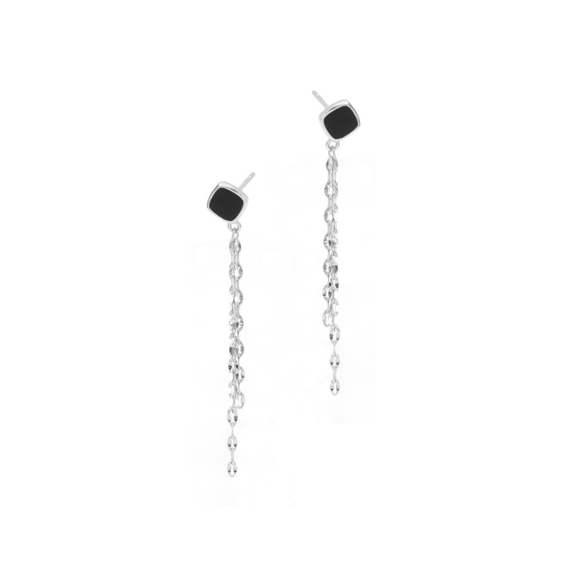 Srebrne kolczyki 925 w kształcie kwadratu pokrytego emalią z ozdobnymi łańcuszkami