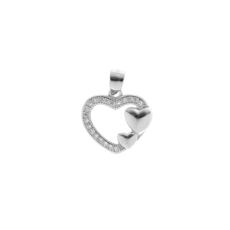Urocza zawieszka w kształcie serca to połączenie elegancji i symboliki miłości. Główne serce zostało ozdobione dookoła lśniącymi, białymi cyrkoniami, które dodają mu blasku i subtelnej klasy. Na jego krawędzi znajdują się dwa mniejsze, gładkie serduszka – delikatny akcent symbolizujący bliskość, więź i ciepło uczuć. Całość wykonano z wysokiej jakości srebra, które pięknie komponuje się z błyskiem kamieni. Ta zawieszka będzie idealnym prezentem dla bliskiej osoby – partnerki, mamy lub przyjaciółki. Świetnie sprawdzi się jako dodatek do codziennych stylizacji, jak i na wyjątkowe okazje.