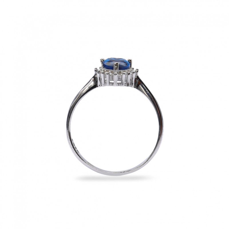 Srebrny pierścionek z pięknym cyrkoniowym granatowym sercem otoczonym mniejszymi błyszczącymi cyrkoniami. Wykonany z najwyższej jakości lśniącego srebra próby 925. Fabrycznie nowy.