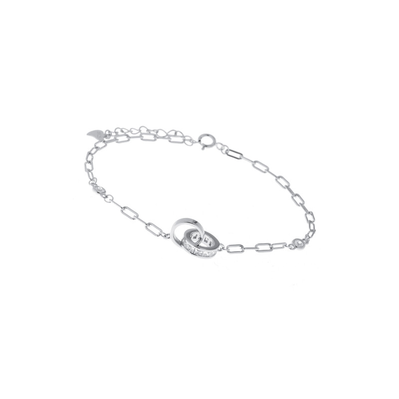 Srebrna bransoletka 925 damska Połączone Pierścienie Cyrkonie