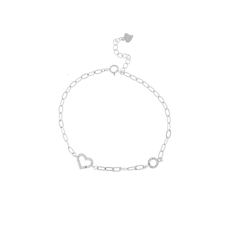 Srebrna bransoletka 925 damska Serce Koło Cyrkonie