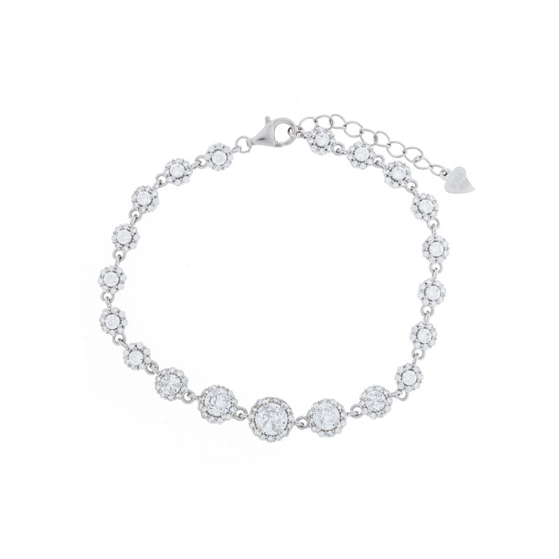 Srebrna bransoletka 925 Srebrzyste Okrągłe Cyrkonie