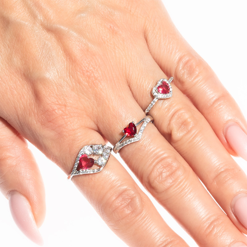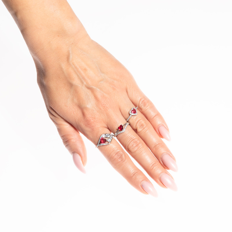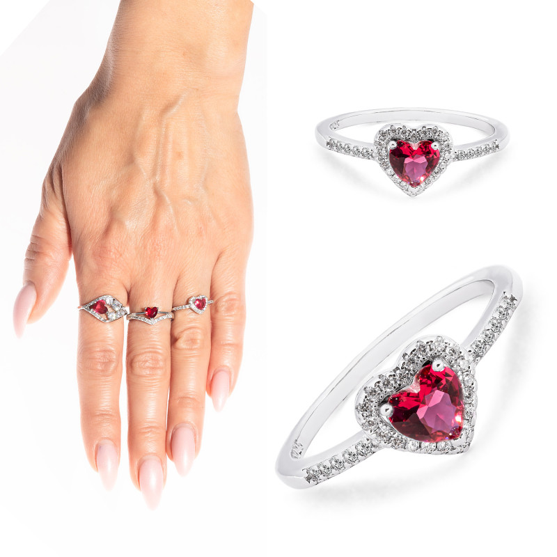 Srebrny Pierścionek 925 z czerwonym cyrkoniowym sercem