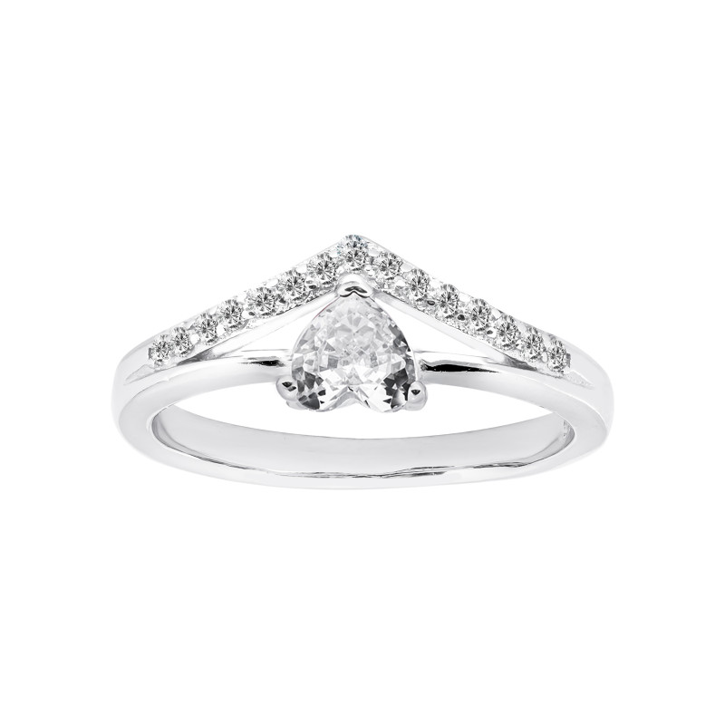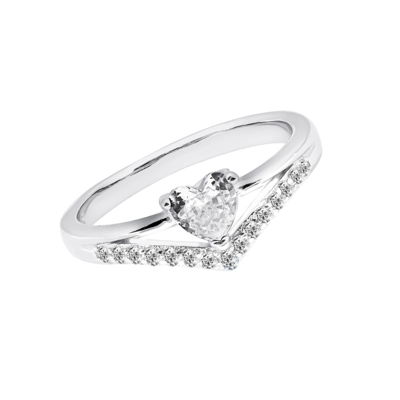 Srebrny Pierścionek 925 z białym cyrkoniowym sercem
