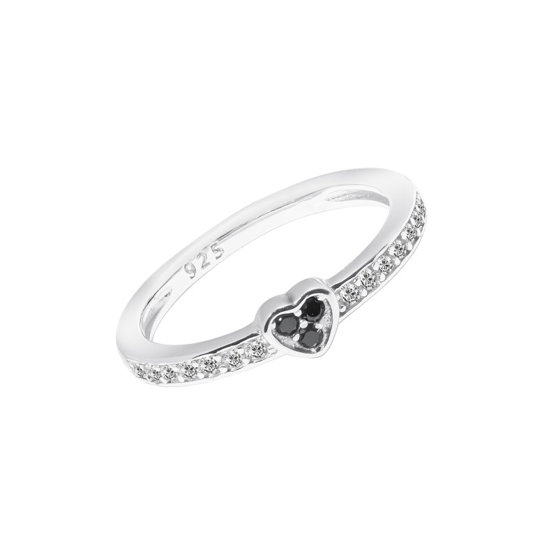 Srebrny Pierścionek 925 z sercem z czarnymi cyrkoniami