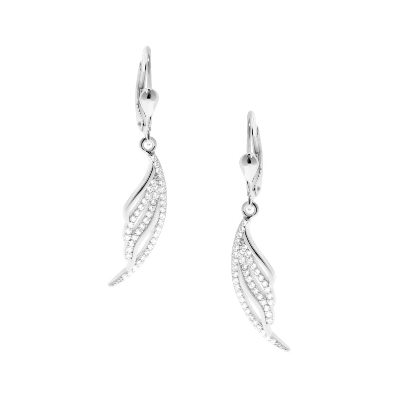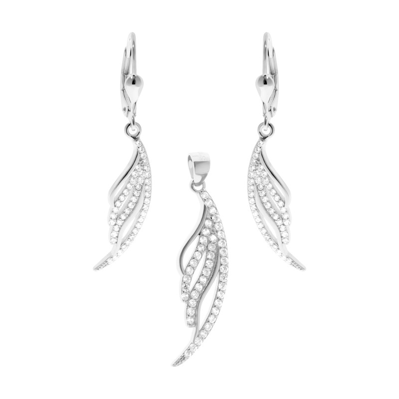 Elegancki komplet biżuterii ze srebra próby 925 składa się z kolczyków na zapięcie angielskie oraz wisiorka w tym samym wzorze. Delikatny kształt przypominający pióro zdobiony jest rzędem lśniących cyrkonii, które dodają całości subtelnego blasku. Smukła, wydłużona forma nadaje biżuterii lekkości i elegancji. Kolczyki są wygodne w noszeniu, a wisiorek pięknie podkreśla dekolt, tworząc spójny i efektowny zestaw. Komplet doskonale sprawdzi się zarówno w codziennych stylizacjach, jak i jako wyjątkowy akcent do eleganckiej kreacji. To idealny pomysł na prezent dla osób ceniących biżuterię subtelną, a jednocześnie pełną blasku.