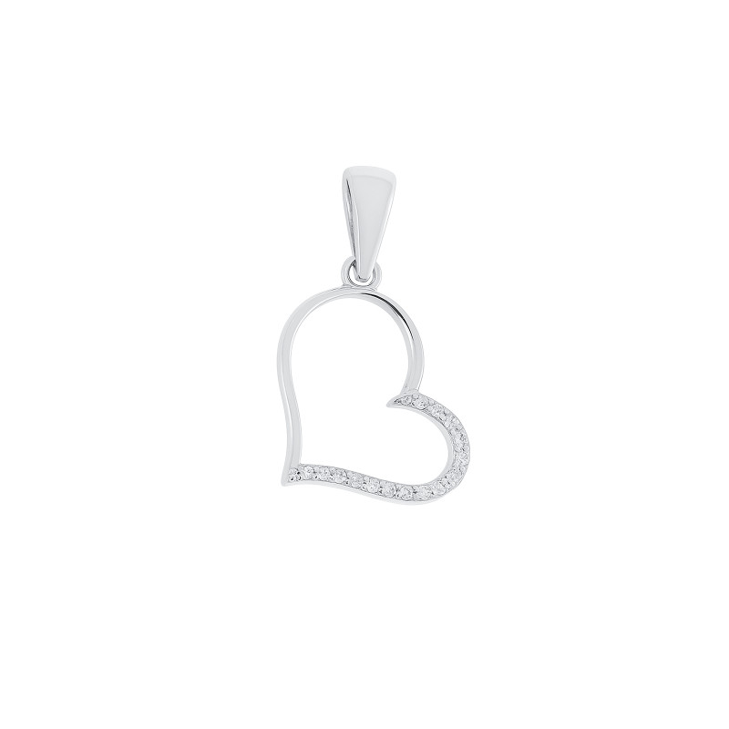 Subtelny komplet biżuterii wykonany ze srebra próby 925, składający się z kolczyków i zawieszki w kształcie otwartego serca. Środek pozostaje pusty, co nadaje kompozycji lekkości i nowoczesnego charakteru, a jeden brzeg ozdobiony połyskującymi cyrkoniami delikatnie rozświetla wzór, dodając mu romantycznego blasku.