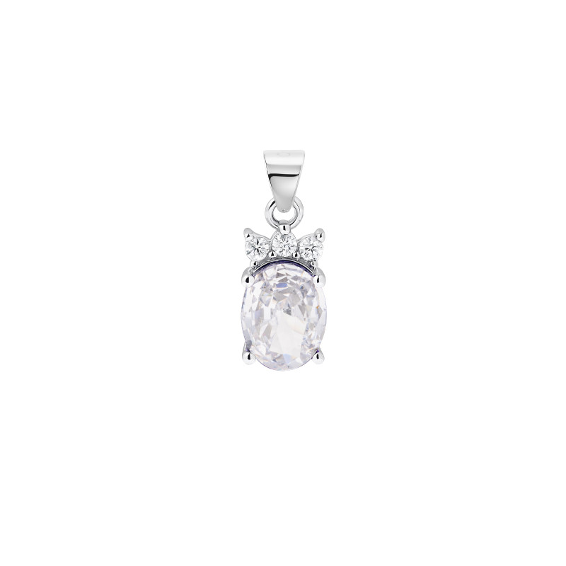 Zjawiskowy komplet biżuterii wykonany ze srebra próby 925, składający się z kolczyków i zawieszki. Centralnym elementem jest owalna, lśniąca cyrkonia, nad którą subtelnie osadzono trzy drobne kamienie, tworzące elegancką, świetlistą kompozycję. Całość zawieszona jest na smukłym, srebrnym pasku, który nadaje biżuterii lekkości i harmonijnego wydłużenia formy.