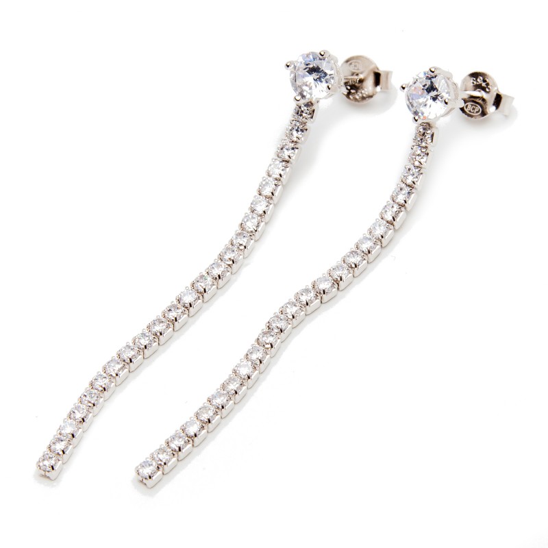 Srebrne kolczyki cyrkonia z kostkowym łańcuszkiem