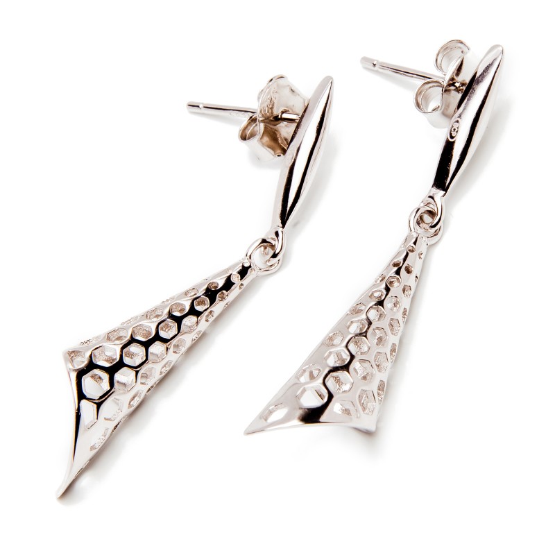 Srebrne kolczyki stożek z otworami. Wykonane z lśniącego srebra próba 925. Fabrycznie nowe.
