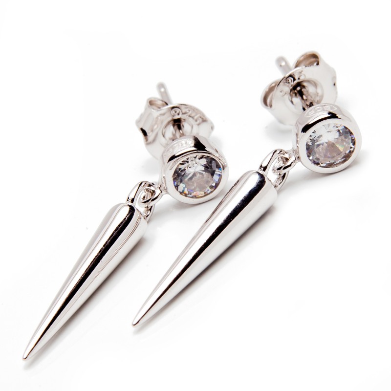 Srebrne kolczyki z białą cyrkonią i soplem. Wykonane z lśniącego srebra próba 925. Fabrycznie nowe.