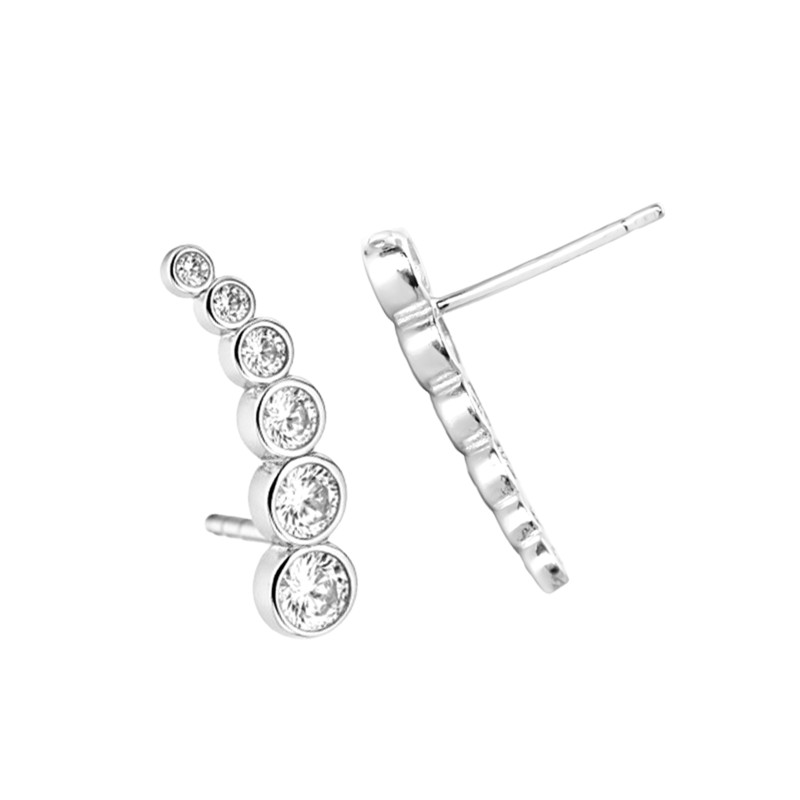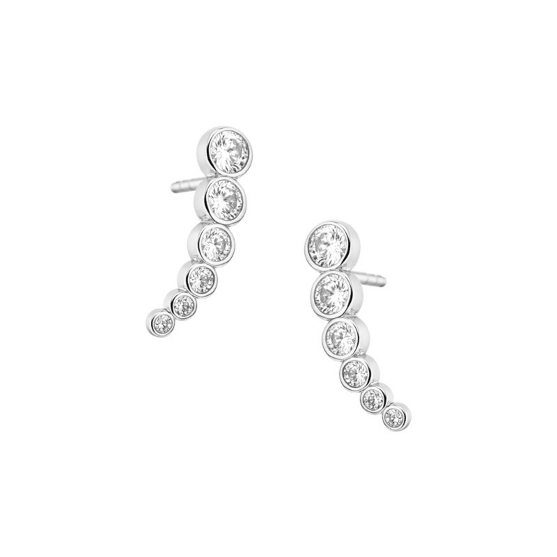 Srebrne kolczyki ze ściśle ułożonymi białymi cyrkoniami tworzącymi róg. Wykonane z lśniącego srebra próba 925. Fabrycznie nowe.