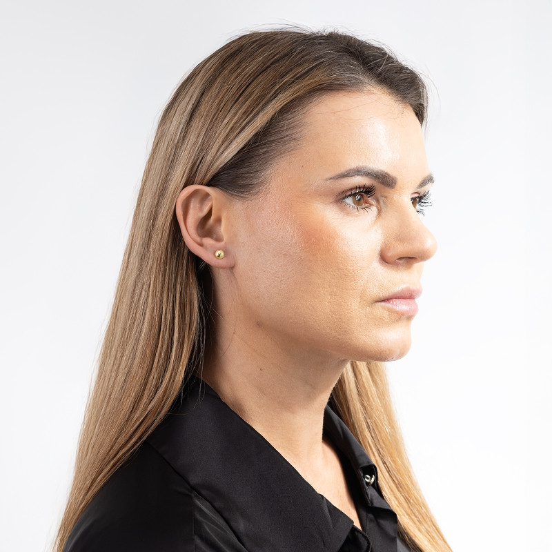 Złote kolczyki w kształcie błyszczących półkulek. Wykonane z lśniącego złota próba 585. Fabrycznie nowe.