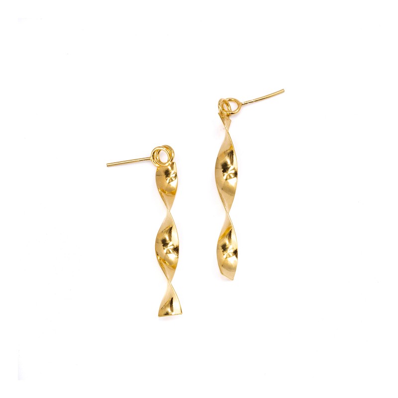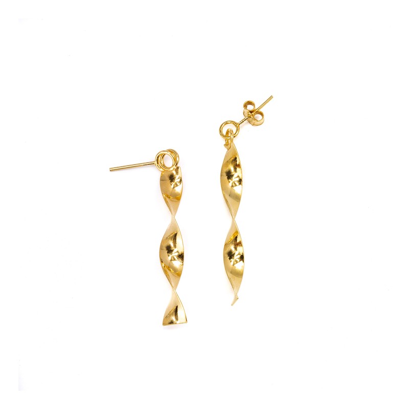 Srebrne kolczyki pozłacane z motywem spirali. Solidne, błyszczące, pięknie odbijające światło. Wykonane z lśniącego pozłacanego srebra próba 925. Fabrycznie nowe.