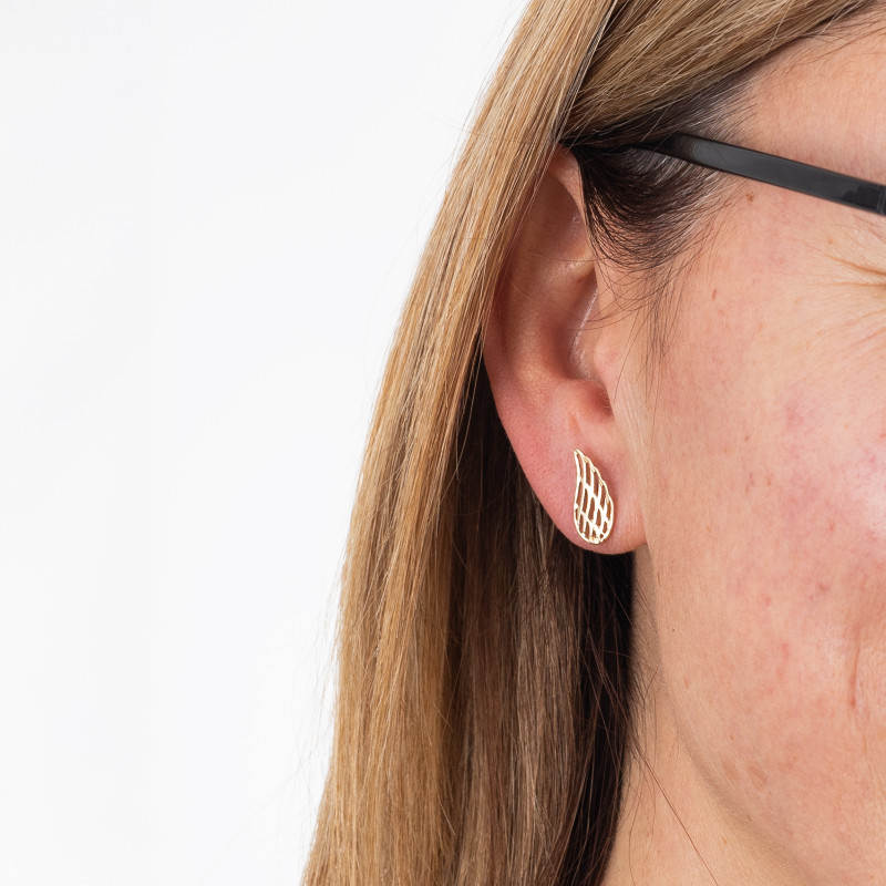 Złote kolczyki sztyft w kształcie ażurowych skrzydeł