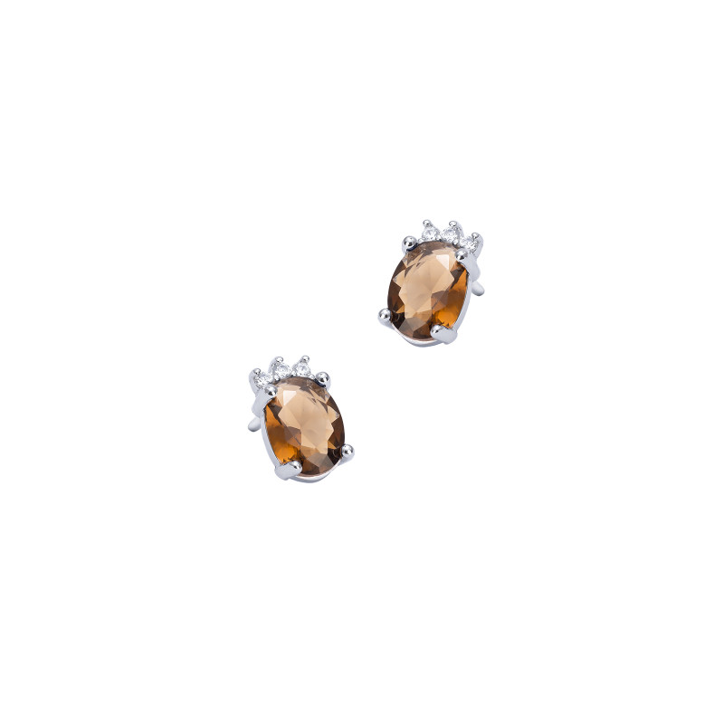 Srebrne kolczyki z motywem błyszczącej owalnej brązowej cyrkonii