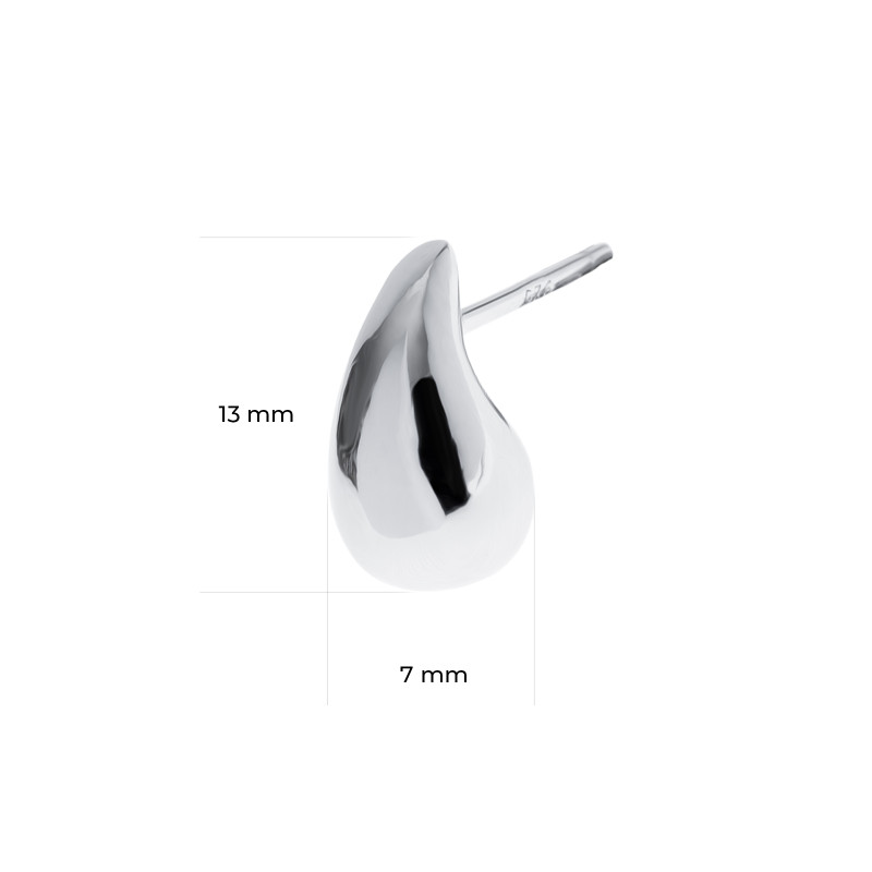 Srebrne kolczyki 925 Krople Drops dostępne są w 3 różnych wymiarach. Te, które oglądasz aktualnie mają 13 milimetrów długości i 7 milimetrów szerokości - co czyni je idealnym dodatkiem do Twoich uszu.