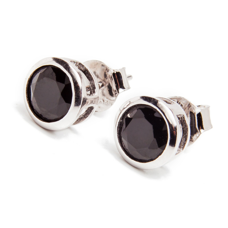 Srebrne kolczyki z czarną cyrkonią. Wykonane z lśniącego srebra próba 925. Fabrycznie nowe.