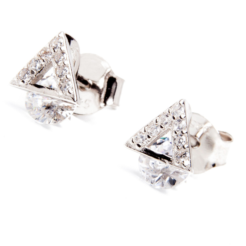 Srebrne kolczyki z motywem trójkąta z ozdobną cyrkonią. Wykonane z lśniącego srebra próba 925. Fabrycznie nowe.