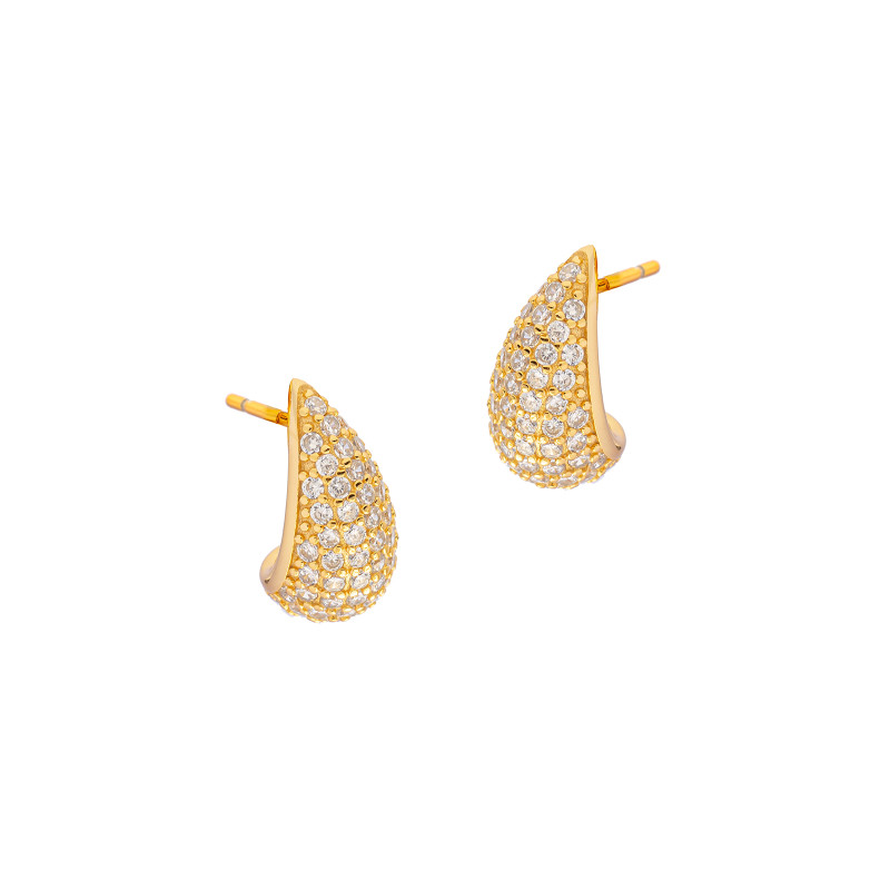 To eleganckie kolczyki o subtelnym, klasycznym kształcie, które dodadzą szyku każdej stylizacji. Zachwycają swoim połyskiem i precyzyjnym wykończeniem. Kolczyki ozdobione są lśniącymi cyrkoniami, które dodają blasku i elegancji. Zapięcie sztyft zapewnia wygodę noszenia oraz bezpieczeństwo. Ich uniwersalny design sprawia, że są idealne zarówno na co dzień, jak i na wyjątkowe okazje. To doskonały wybór dla kobiet ceniących klasykę z nutą luksusu. Te kolczyki świetnie komponują się z inną biżuterią w złotym odcieniu. Dodaj odrobinę elegancji do swojej kolekcji i poczuj się wyjątkowo!