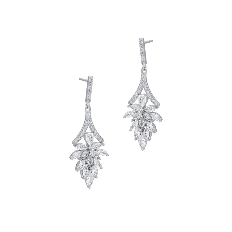 Srebrne 925 kolczyki wiszące kwiat z cyrkoniami