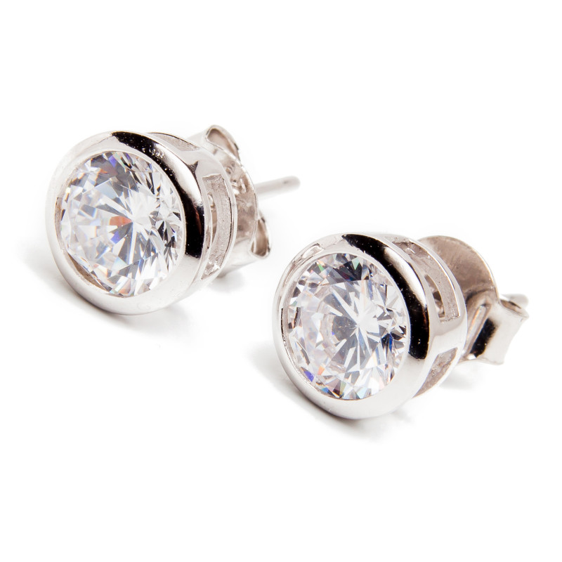 Srebrne kolczyki z białą cyrkonią. Wykonane z lśniącego srebra próba 925. Fabrycznie nowe.