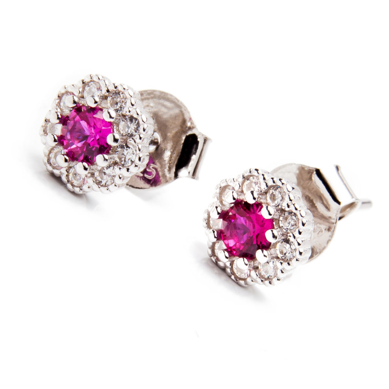Srebrne kolczyki z różową cyrkonią. Wykonane z lśniącego srebra próba 925. Fabrycznie nowe.
