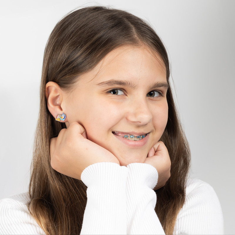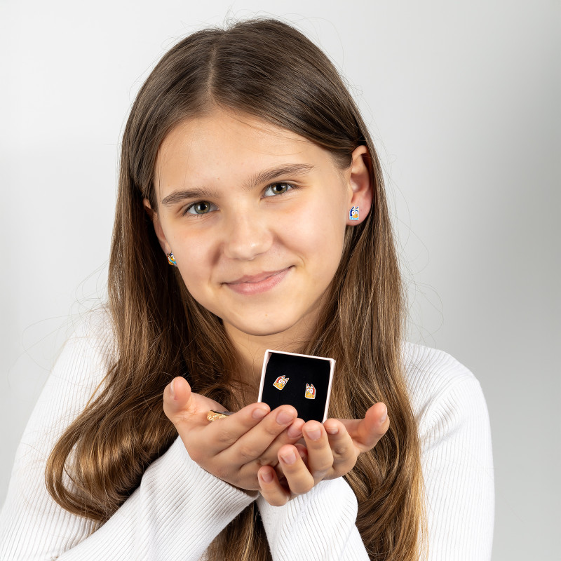Podaruj uśmiech swojej małej księżniczce! - te srebrne kolczyki z pomarańczowym pieskiem Bingo będą jej ulubioną biżuterią!