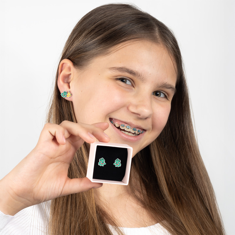 Kolczyki srebrne 925 z emalią Bulbasaur dla małej damy PREZENT