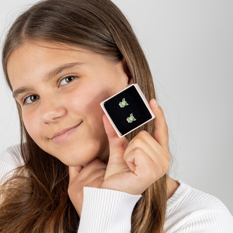 Kolczyki srebrne 925 z emalią Leafeon PREZENT