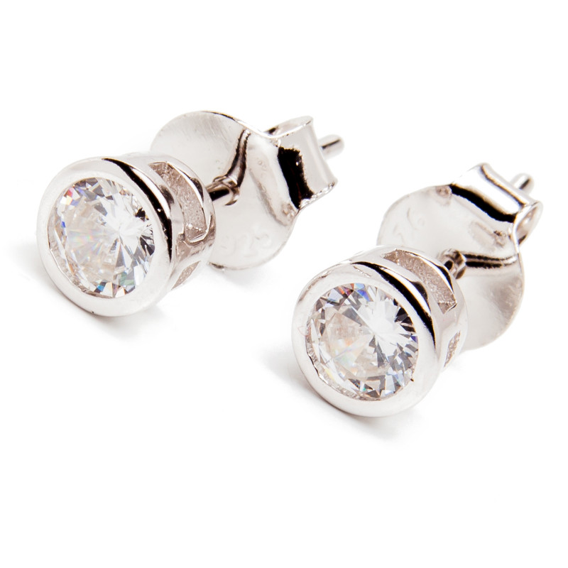Srebrne kolczyki z białą cyrkonią. Wykonane z lśniącego srebra próba 925. Fabrycznie nowe.