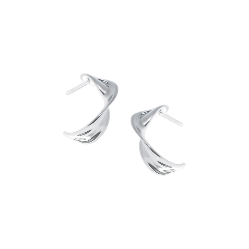 Eleganckie kolczyki w formie skręconych półkoli to nowoczesna biżuteria z artystycznym charakterem. Ich delikatnie falujący kształt tworzy efekt ruchu i lekkości, doskonale wpisując się w minimalistyczny styl. Wykonane ze srebra wysokiej próby, zachwycają połyskiem i precyzją wykończenia. Gładka, lśniąca powierzchnia odbija światło, dodając twarzy świeżości i blasku. Zapięcie na sztyft zapewnia komfort i bezpieczeństwo noszenia. To idealna propozycja dla kobiet ceniących nowoczesną formę i subtelną elegancję.