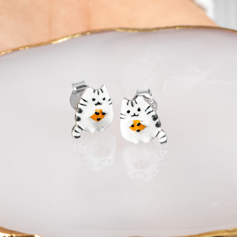 Srebrne kolczyki Pusheen to doskonały pomysł na wyjątkowy prezent. Zapakowane w pięknym, eleganckim i stylowym pudełku stanowią gotowy upominek, który z pewnością wywoła szeroki uśmiech na twarzy obdarowanej! :)