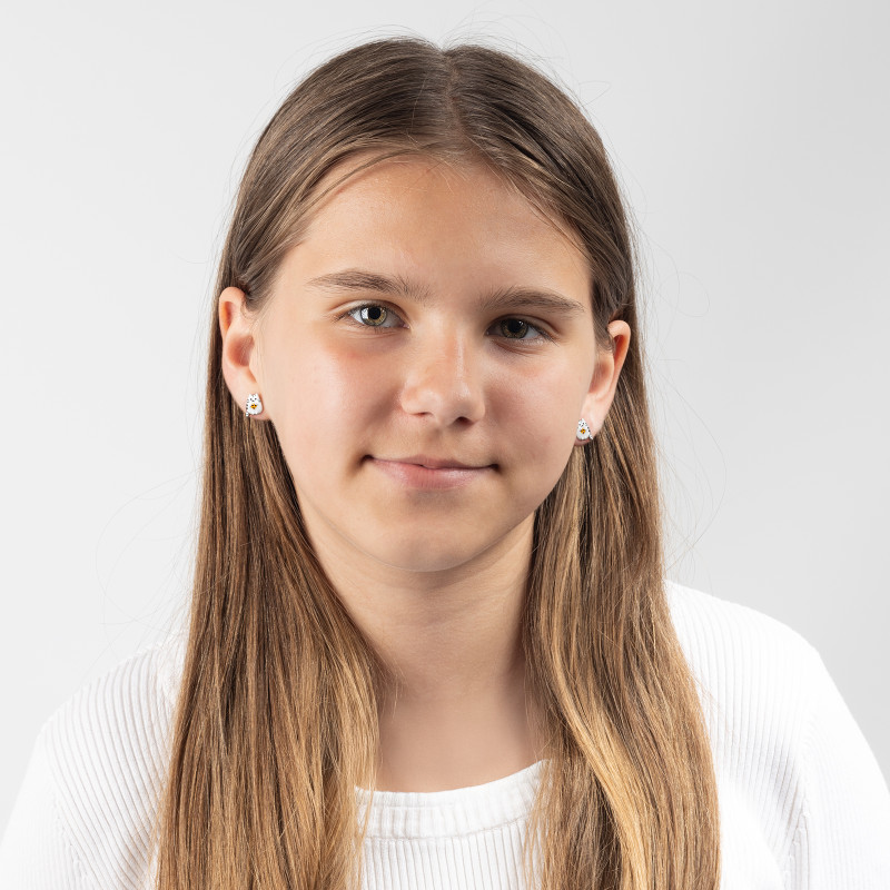 Srebrne kolczyki Pusheen z różowym donutem posiadają zapięcie typu sztyft, które gwarantuje bezpieczeństwo i wygodę użytkowania. Dzięki niemu możesz być pewna, że kolczyki pozostaną na uszach Twojej pociechy :)