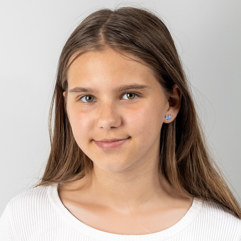 Srebrne kolczyki Stich posiadają zapięcie typu sztyft, które gwarantuje bezpieczeństwo i wygodę użytkowania. Dzięki niemu możesz być pewna, że kolczyki pozostaną na uszach Twojej pociechy :)