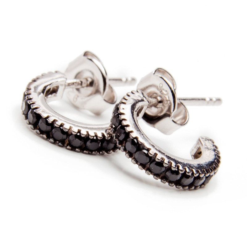 Srebrne kolczyki z czarnymi cyrkoniami. Wykonane z lśniącego srebra próba 925. Fabrycznie nowe.