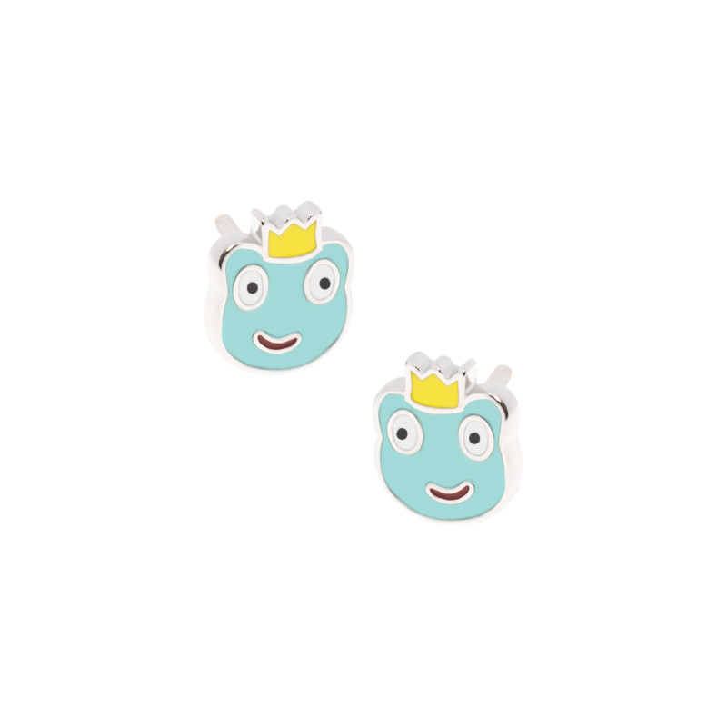 Srebrne kolczyki 925 Żaba z koroną